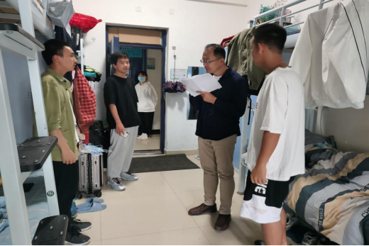 走访中,鄢书记仔细查看了寝室内卫生、陈设,把存在的问题记录下来并表示大家有问题要及时向院系反应。书记亲切的与同学们交谈,询问大家的学习和生活等情况,并提醒同学们在平常的生活中,务必注意财物安全、用电安全、人身安全,保持宿舍卫生,建立良好人际关系,度过美好的老员工活。